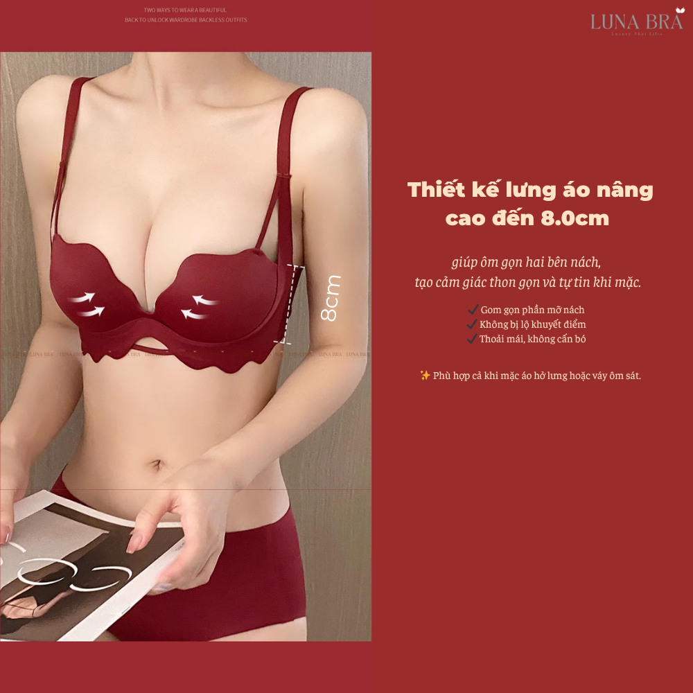 Áo lót cao cấp Luna Bra khoét ngực đệm 3cm bản đai che mỡ lưng mỡ nách - AL032